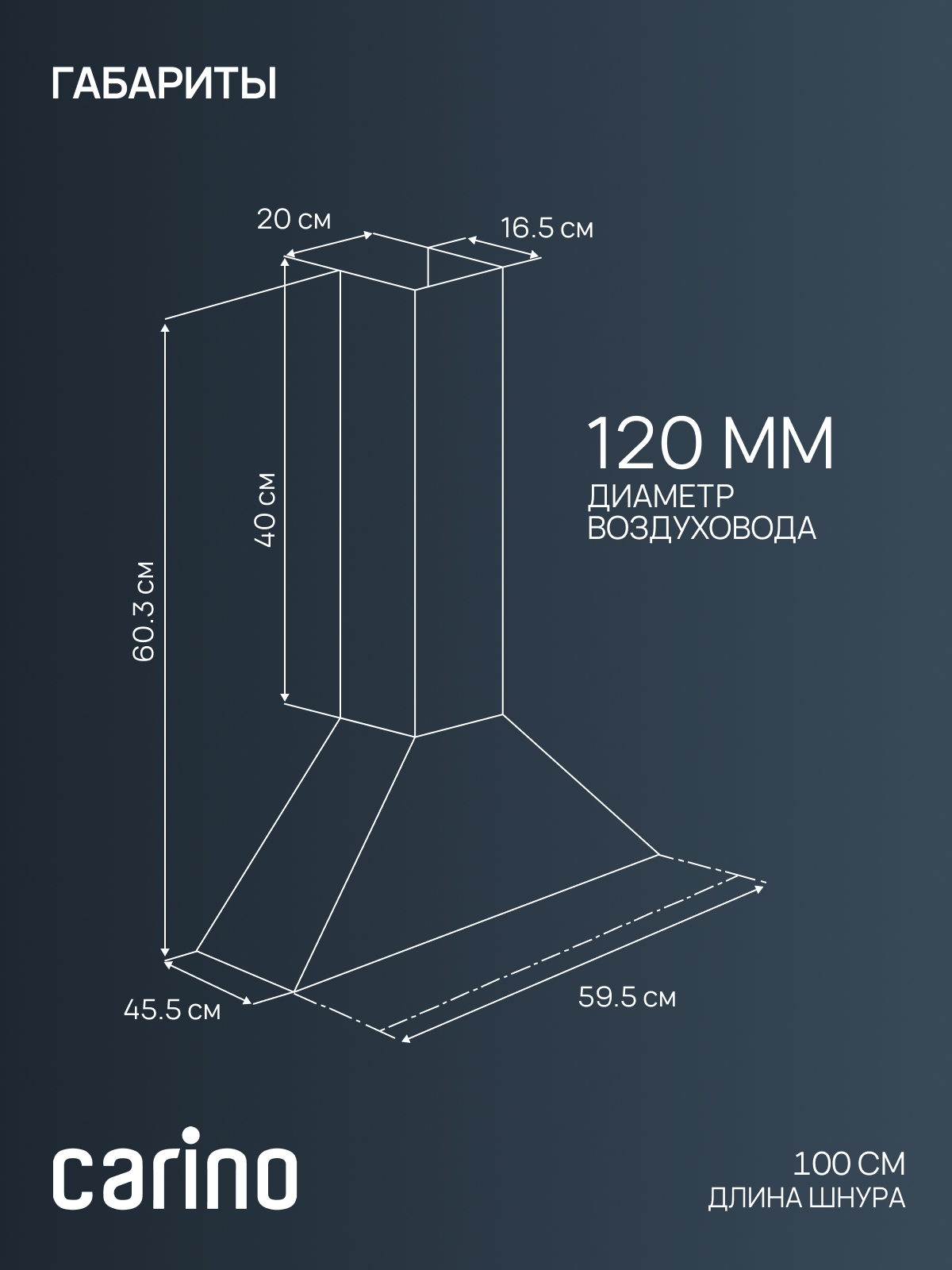 CARINO C8664SM – это надёжность, стиль и производительность в одном устройстве. Современное решение для свежего и чистого воздуха на вашей кухне!