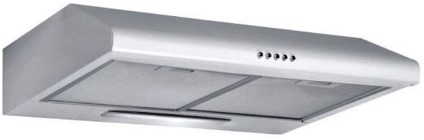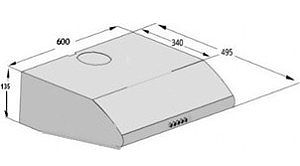 Козырьковая вытяжка из нержавеющей стали оснащена двумя моторами мощностью 95 Вт. При этом модель отличается довольно тихой работой — уровень шума 52 дБ. На механической панели управления расположена кнопка включения и отключения освещения.